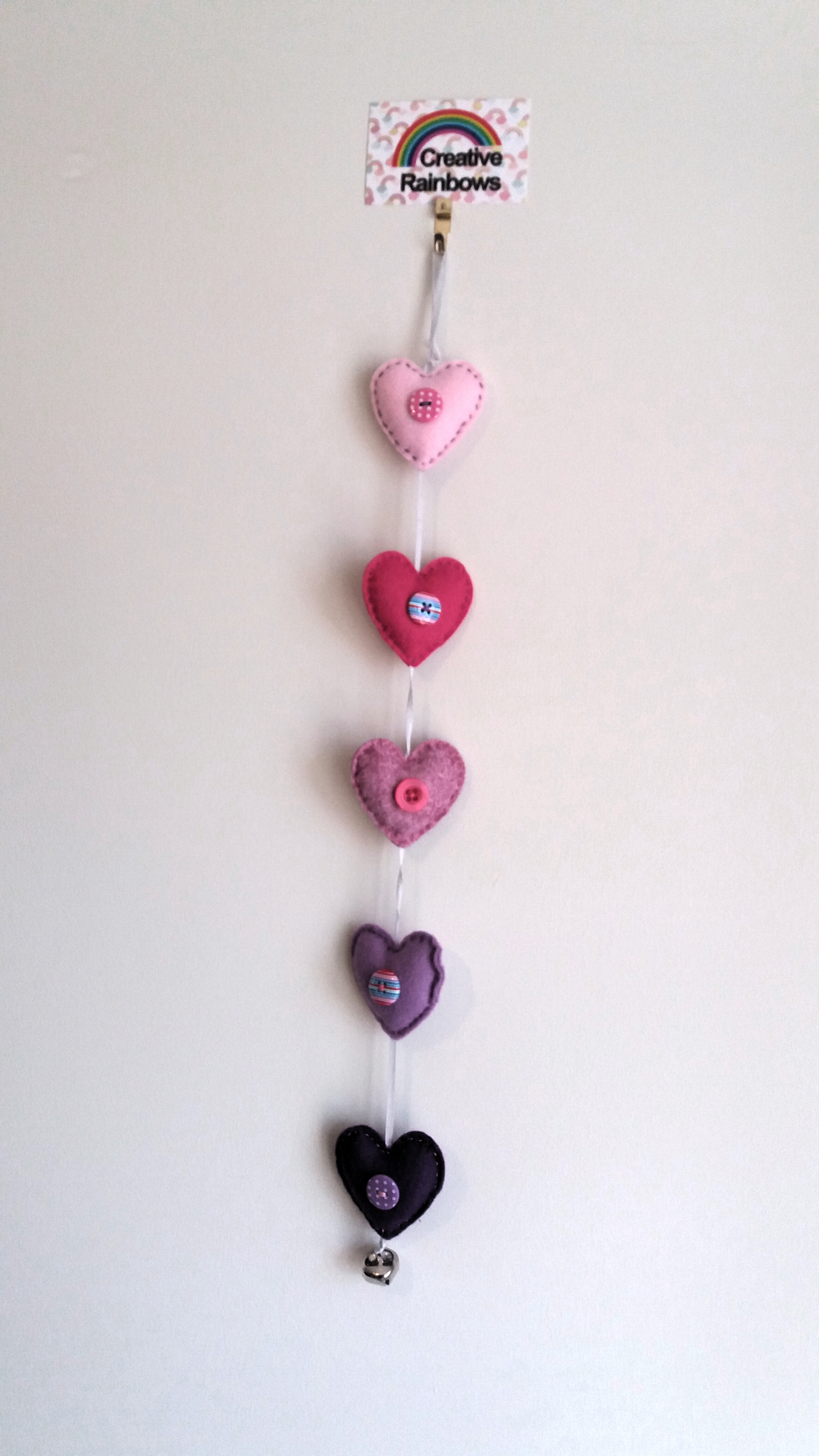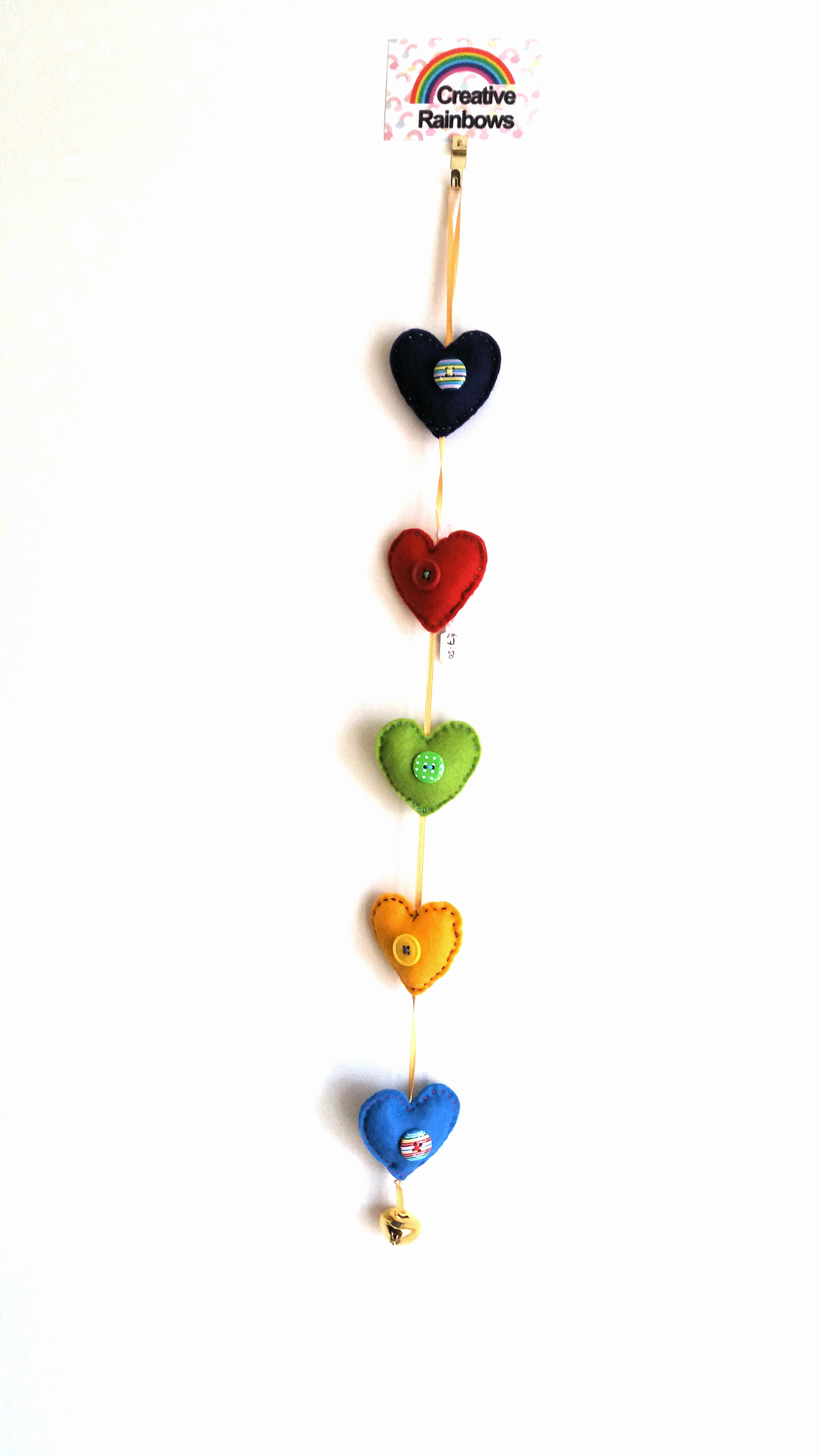 5 hearts rainbows colours with bell